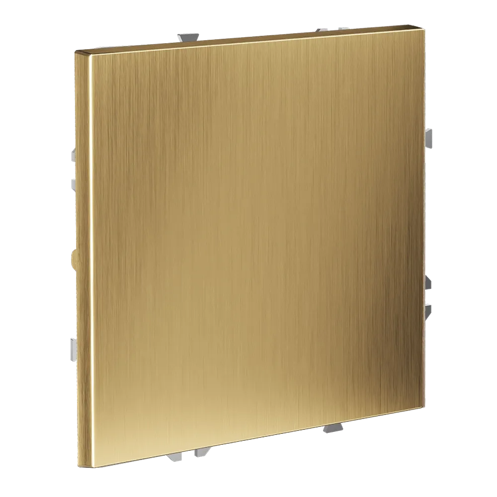 Золотисто-медный оттенок латуни с матовой брашированной фактурой — это атмосфера дома, воплощённая в детали. Металлическая накладка прошла многоступенчатую обработку: