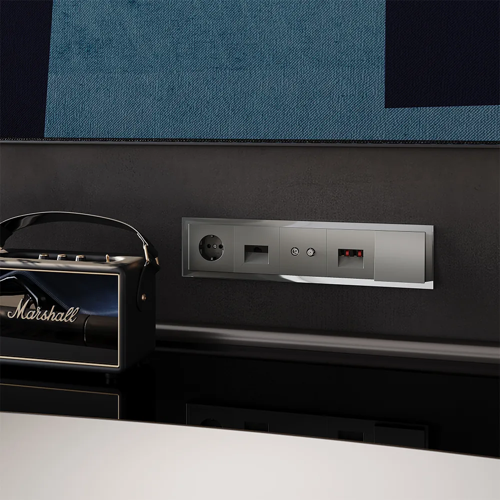 Создайте технологичный дуэт: механизмы сталь в паре с рамками никель добавят глубины и современности зоне кухонного острова или барной стойки. Или соберите графичную композицию: механизмы сталь с рамками графит — контраст холодного серого и глубокого чёрного создаст эффектную игру тонов в интерьере с бетонными стенами.