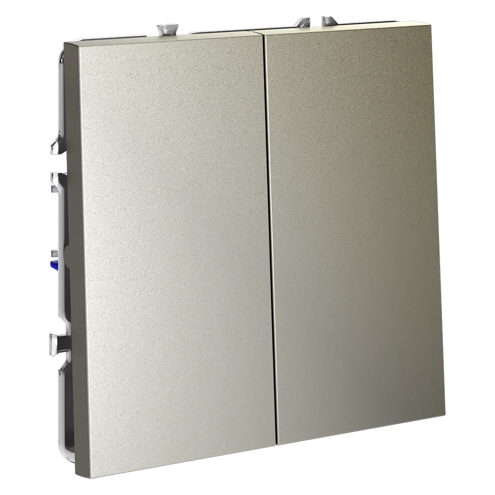 Двухклавишный проходной переключатель VOLTUM S70 в цвете «шелк» — это продвинутое решение для независимого управления двумя группами освещения из двух и более точек. Идеально подходит для просторных гостиных, спален с отдельной зоной отдыха, офисов и многоуровневых помещений, где требуется гибкость и удобство управления светом — например, у входа и у изголовья кровати.
